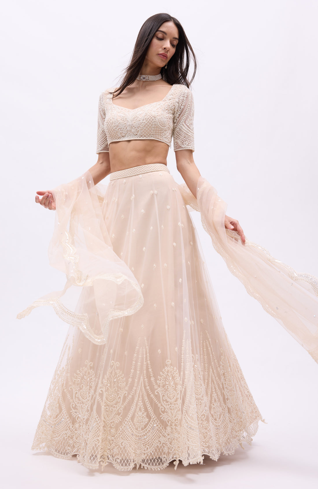 Net- Lehenga, Blouse, Dupatta