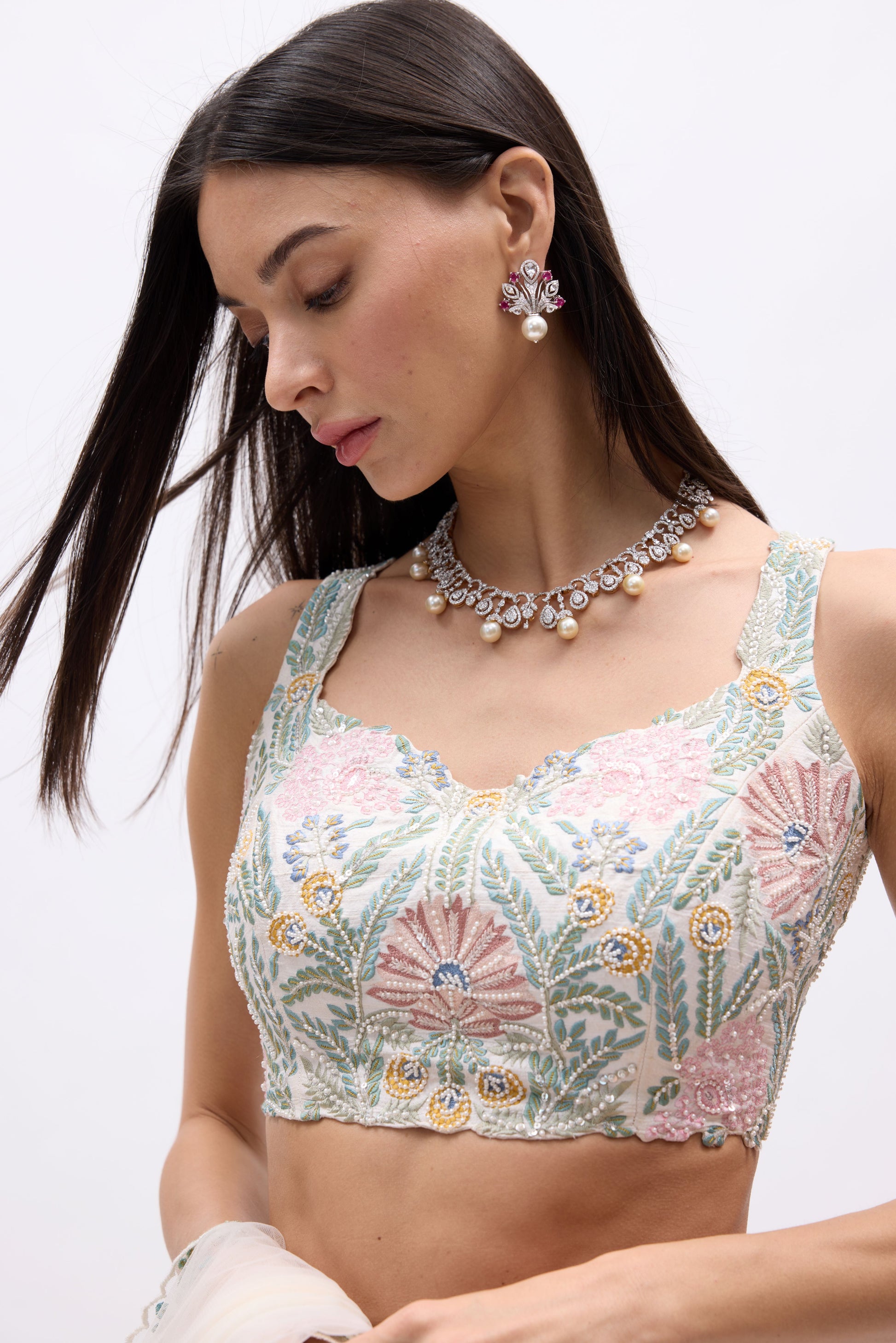 Raw Silk- Lehenga, Blouse | Organza - Dupatta