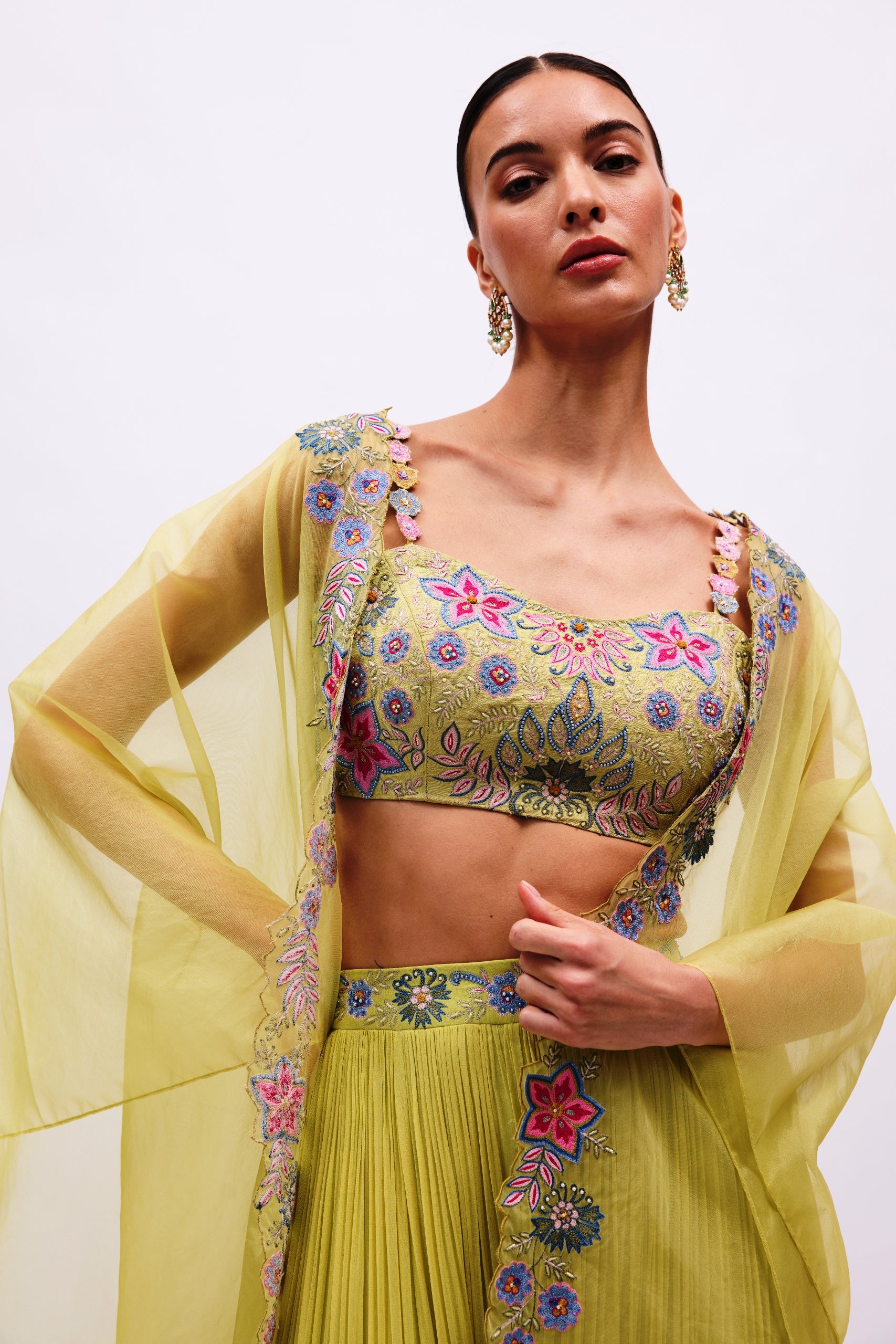 Raw Silk- Blouse| Georgette - Pants| Organza - Cape